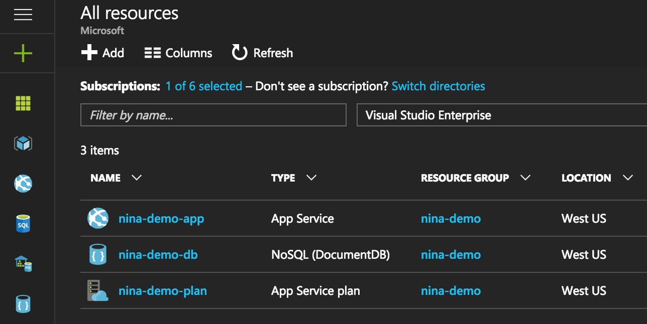 Beyond simply providing a walkthrough of the NINA 2016 demo, we hope to use this demo to continue iterating on the overall Node.js experience in both VS Code and Azure, so we can make it simpler and more flexible. If you have any questions or feedback for how we can improve things, please don't hesitate to file an issue on this repo or send me an e-mail. Thanks!
