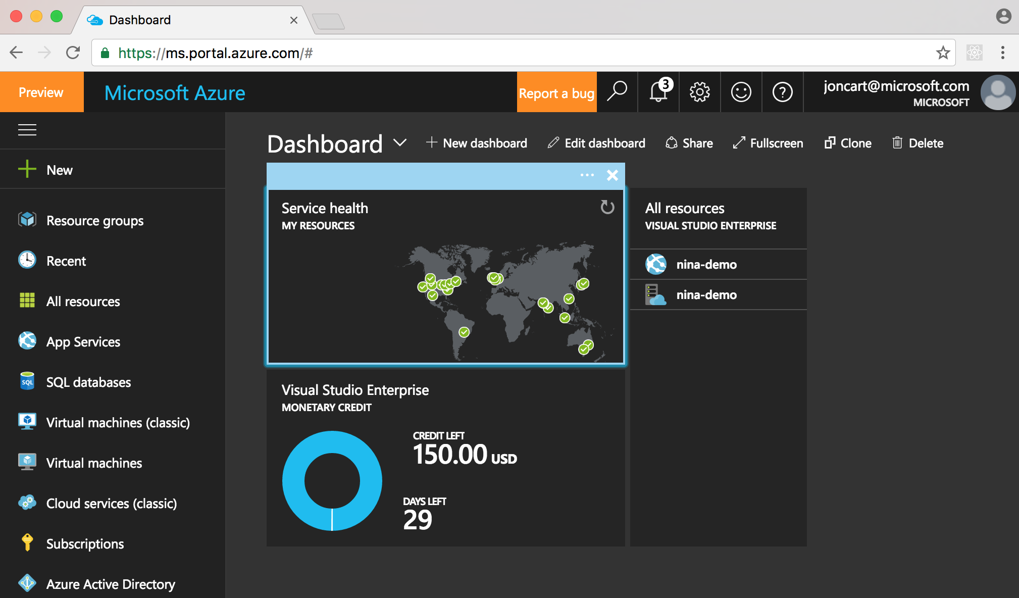 - Go to portal.azure.com and sign in to the same account you were using in the CLI.