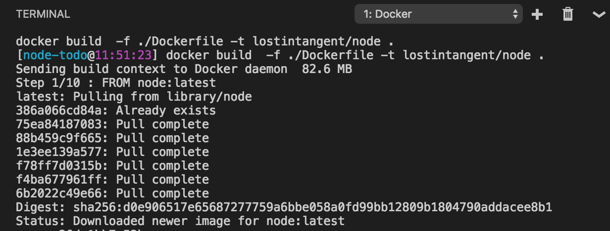 Notice that the command simply automated the process of running docker build for you, which is another example of a productivity enhancer that you can either choose to use, or you can just use the Docker CLI directly. Whatever works best for you!